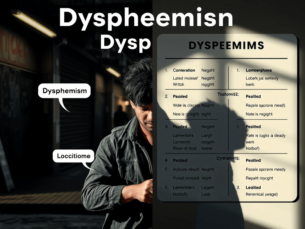 A dysphemism is a figure of speech where a harsh, blunt, or offensive term is used instead of a more neutral or pleasant one. It’s the opposite of euphemism. Dysphemisms are often used to shock, criticize, or convey contempt.