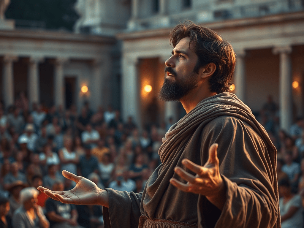 An epirrhema is a rhetorical device from ancient Greek drama in which a speaker (often in comedy) delivers a long, formal, and usually argumentative or moralizing speech that comments on the main action. It’s often witty, satirical, or didactic in tone, meant to drive home a point or entertain while teaching.