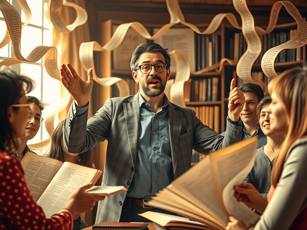 Macrologia is often used in satire or comedic writing to poke fun at overly pompous speakers.