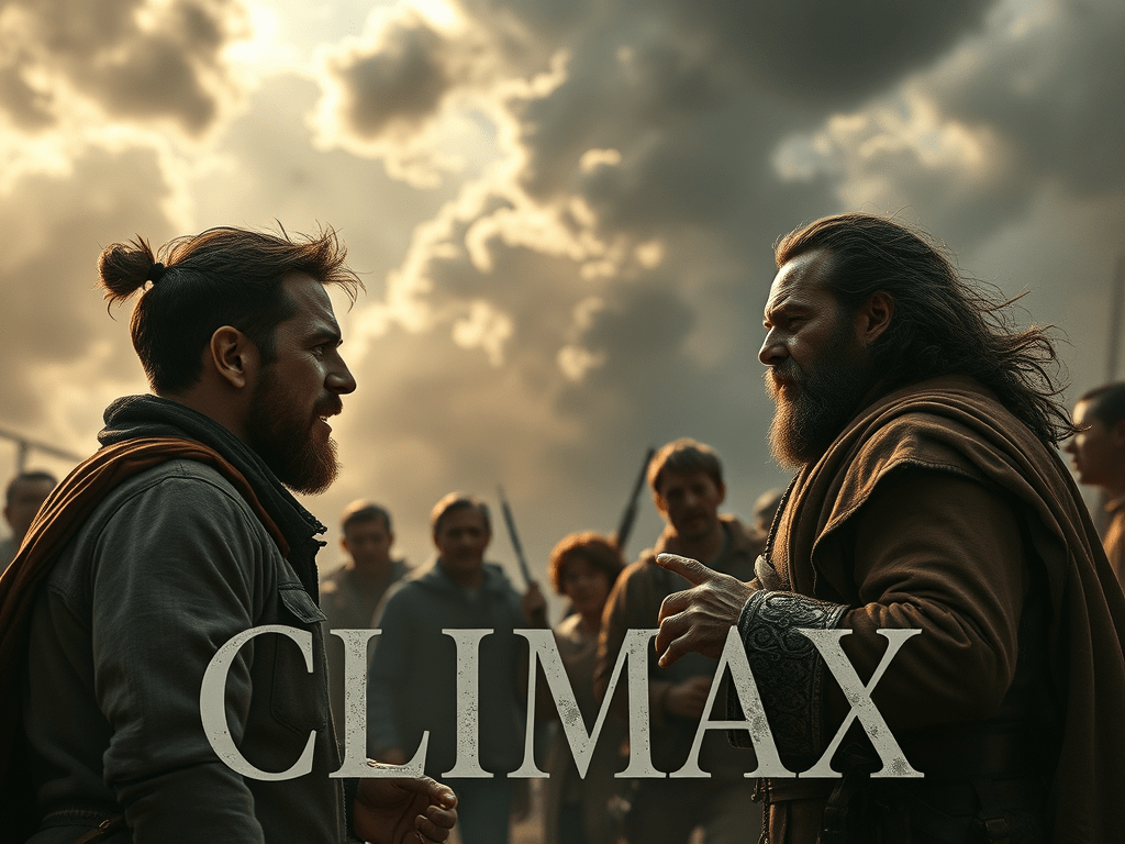 The moment in a narrative when the conflict reaches its most intense point, and the direction of the story changes toward resolution.