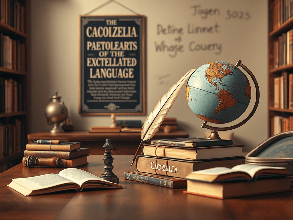 Cacozelia (pronounced kah-koh-ZEE-lee-uh) is a rhetorical or literary device that refers to the use of affected, pretentious, or ostentatious language—when a writer or speaker deliberately uses fancy, foreign, or overly ornate words to sound more intelligent, sophisticated, or learned than they actually are.